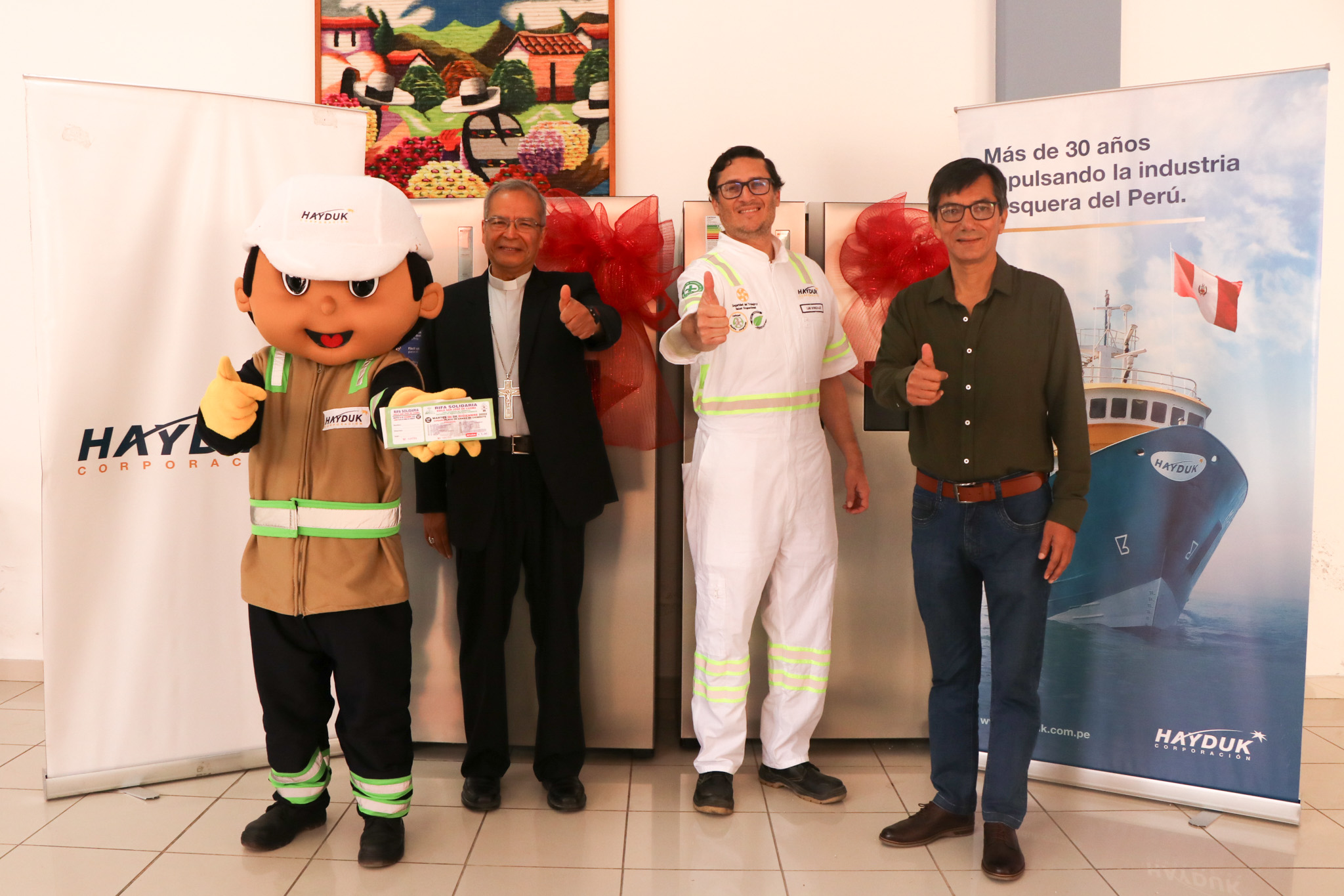 En una ceremonia especial y comprometidos con su labor de responsabilidad social, la pesquera Hayduk realizó la entrega de diversos regalos al asilo San José, para ser utilizados en una rifa solidaria que beneficiará a los adultos mayores de dicha institución. Los premios donados serán sorteados en esta rifa solidaria y todas las ganancias serán destinadas para el asilo. Este acto benéfico ayudará al mantenimiento y buen servicio del establecimiento, promoviendo el bienestar y comodidad de los adultos mayores. Esta ceremonia realizada en la Diócesis de Chimbote contó con la presencia del Monseñor Ángel Ernesto Zapata Bances; el Administrador del Asilo San José, Pascual Izaguirre Sabino, el representante de la beneficencia de Chimbote, Luis Luna Villareal; y Luis Enrique Gonzales, representante de Hayduk. El Monseñor agradeció esta donación manifestando “Es importante y se va a necesitar la ayuda de todos, pero queremos ayudar con elementos más sólidos, asistenciales, por ello agradecemos a las empresas e instituciones que se están sumando” Por su parte, el representante de Hayduk, Luis Enrique Gonzales, señaló que esta donación es un acto de amor y solidaridad hacia los adultos mayores del asilo, como parte de los valores de la empresa y en consecuencia con sus labores de responsabilidad social.